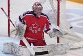 Континентальная хоккейная лига (КХЛ). Матч между командами ЦСКА (Москва) - "Металлург МГ" (Магнитогорск) на стадионе "ЦСКА Арена". Вратарь команды ЦСКА Илья Сорокин во время матча.