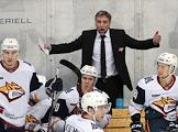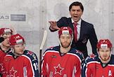 Континентальная хоккейная лига (КХЛ). Матч между командами ЦСКА (Москва) - "Металлург МГ" (Магнитогорск) на стадионе "ЦСКА Арена". Главный тренер команды "Металлург МГ" Йозеф Яндач (в центре) во время матча.