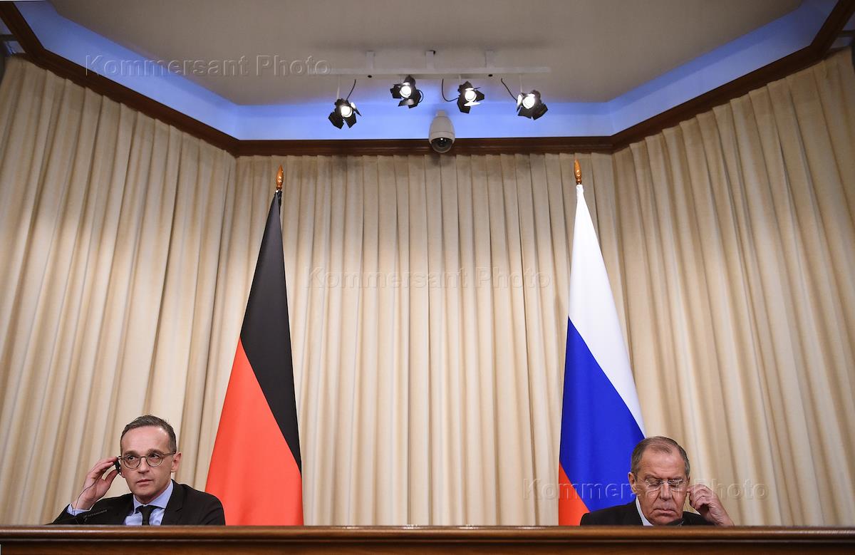 Министр иностранных дел Германии Хайко Маас (слева) и министр иностранных дел России Сергей Лавров (справа) во время встречи в Доме приемов МИД России.