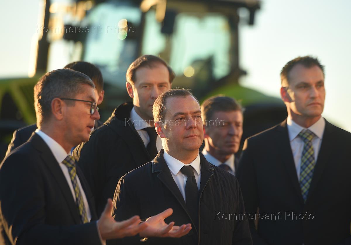 Рабочая поездка председателя Правительства России Дмитрия Медведева в Краснодар. Машиностроительный завод 000 "КЛААС" - дочернее предприятие немецкой фирмы CLAAS KGaAmbH.