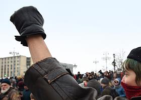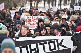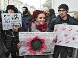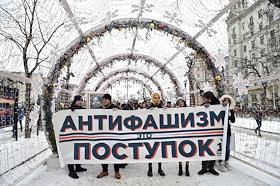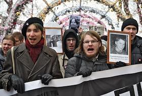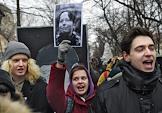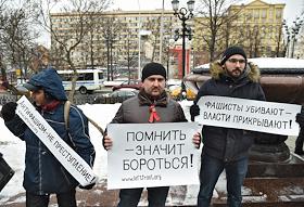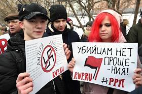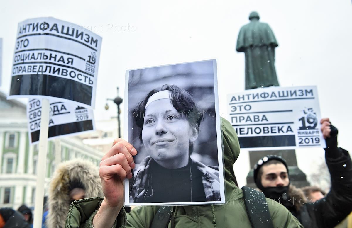Участники ществия, организованного антифашистами, памяти адвоката Станислава Маркелова и журналистки "Новой газеты" Анастасии Бабуровой.