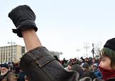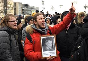 Участник шествия, организованного антифашистами, памяти адвоката Станислава Маркелова и журналистки "Новой газеты" Анастасии Бабуровой на месте их убийства.
