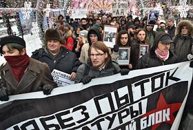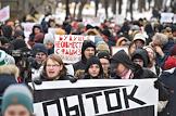 Участники шествия, организованного антифашистами, памяти адвоката Станислава Маркелова и журналистки "Новой газеты" Анастасии Бабуровой.