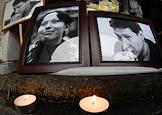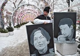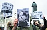 Шествие, организованное антифашистами, памяти адвоката Станислава Маркелова и журналистки "Новой газеты" Анастасии Бабуровой. Портреты Маркелова и Бабуровой и свечи.