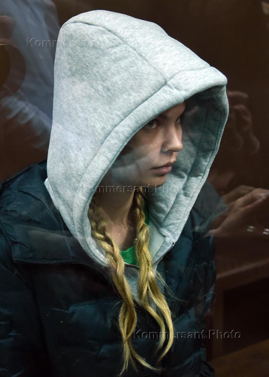 Гражданка Белоруссии Настя Рыбка (Анастасия Вашукевич), обвиняемая в вовлечении в занятия проституцией, во время заседания Нагатинского районного суда.