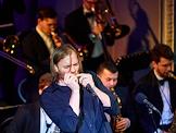 Юбилейный концерт, посвященный 30-летию Фалирмонии Джазовой Музыки. Профессиональный российский исполнитель на хроматической губной гармонике Максим Некрасов во время концерта.