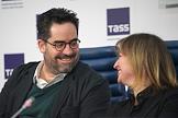 Пресс-конференция, посвященная открытию фотолаборатории Magnum Live Lab/19 и созданию выставки о Москве в парке "Зарядье" прошла в пресс-центре ТАСС. Президент фотоагентства Magnum Photos Томас Дворжак (слева) и хозяйка галереи "Победа", куратор проекта Magnum Live Lab/19 Нина Гомиашвили (справа) во время пресс-конференции.