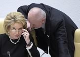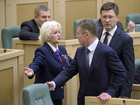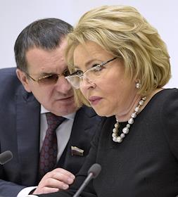 Пленарное заседание Совета Федерации (СФ) России. Председатель Совета Федерации России Валентина Матвиенко (справа) и первый заместитель председателя СФ России Николай Федоров (слева) во время заседания.