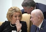 Пленарное заседание Совета Федерации (СФ) России. Слева направо: председатель СФ России Валентина Матвиенко и ее заместители Юрий Воробьев и Евгений Бушмин во время заседания.