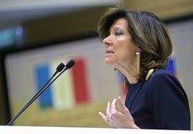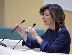Пленарное заседание Совета Федерации (СФ) России. Председатель Сената Италии Мария Казелатти во время заседания.