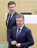 Пленарное заседание Совета Федерации (СФ) России. Министр энергетики России Александр Новак (слева) и заместитель председателя правительства России Дмитрий Козак (справа) во время заседания.