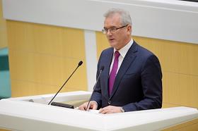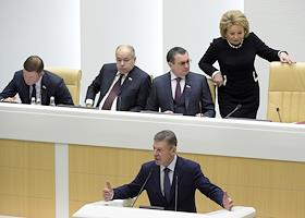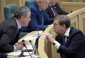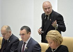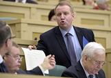 Пленарное заседание Совета Федерации (СФ) России. Представитель от исполнительного органа государственной власти Смоленской области Франц Клинцевич (справа) во время заседания.
