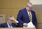 Пленарное заседание Совета Федерации (СФ) России. Адвокат Петр Кучеренко (второй справа) и представитель администрации Белгородской области в Совете Федерации Николай Рыжков (справа) во время заседания.