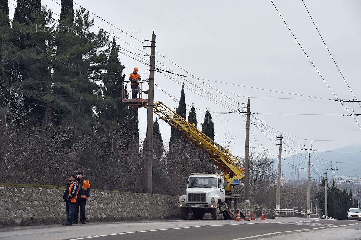 Жанровая фотография. Электромонтеры во время электромонтажных работ.