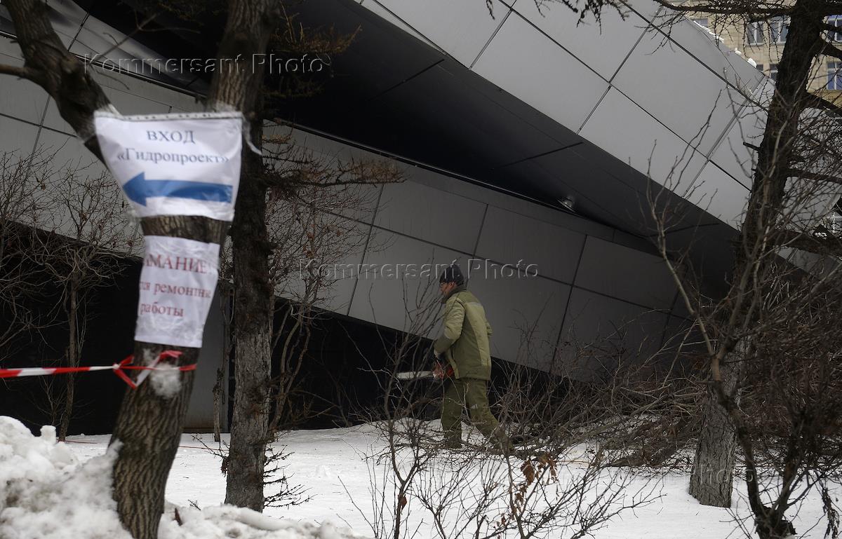Обрушение козырька здания бизнес-центра, в котором расположен институт "Гидропроект", по адресу Волоколамское шоссе, дом 2.