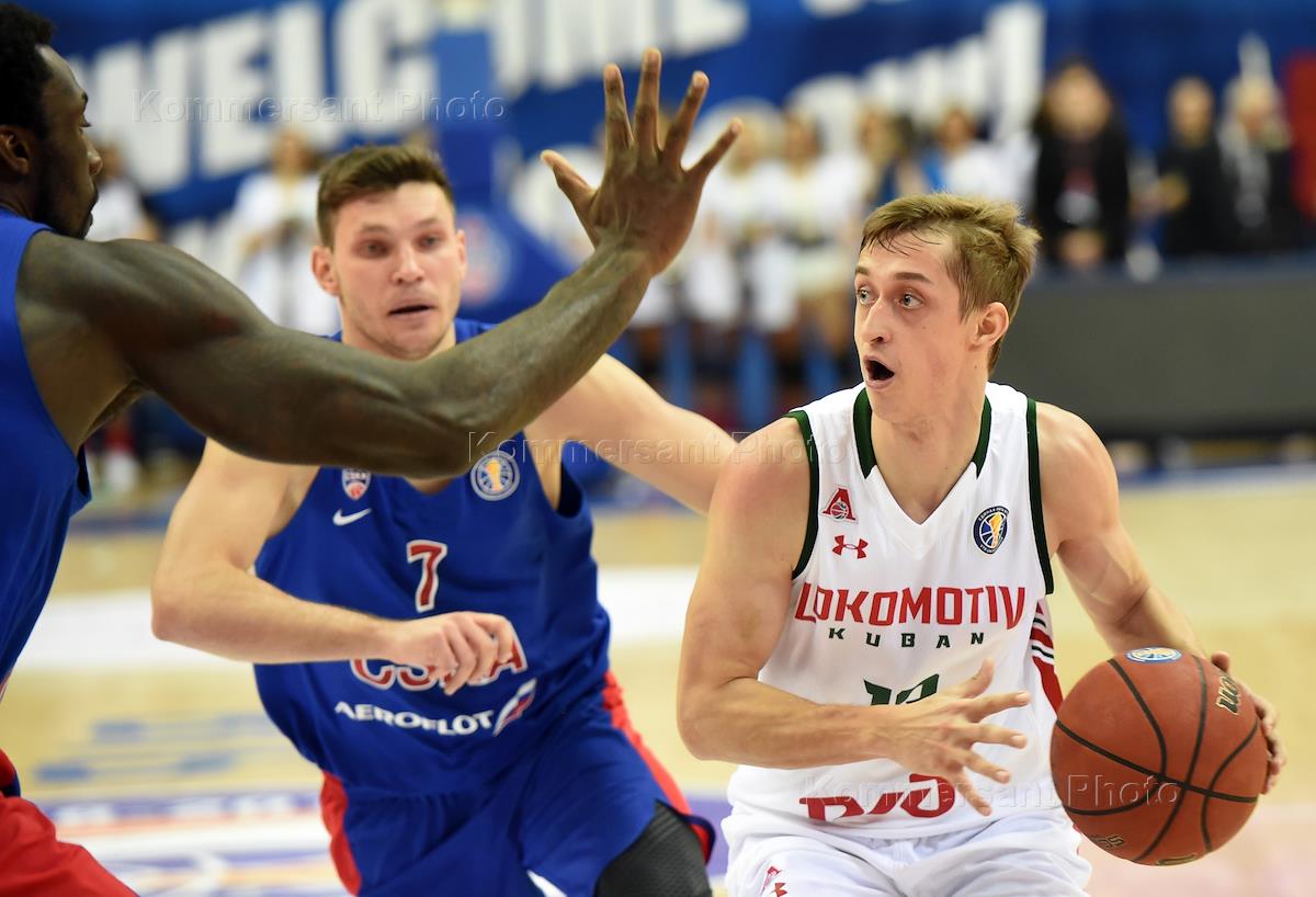 Единая лига ВТБ по баскетболу. Матч между командами ЦСКА (Москва) и "Локомотив-Кубань" (Краснодар) на "УСК ЦСКА имени А. Я. Гомельского". Игрок команды "Локомотив-Кубань" Матеуш Понитка (в центре) во время матча.