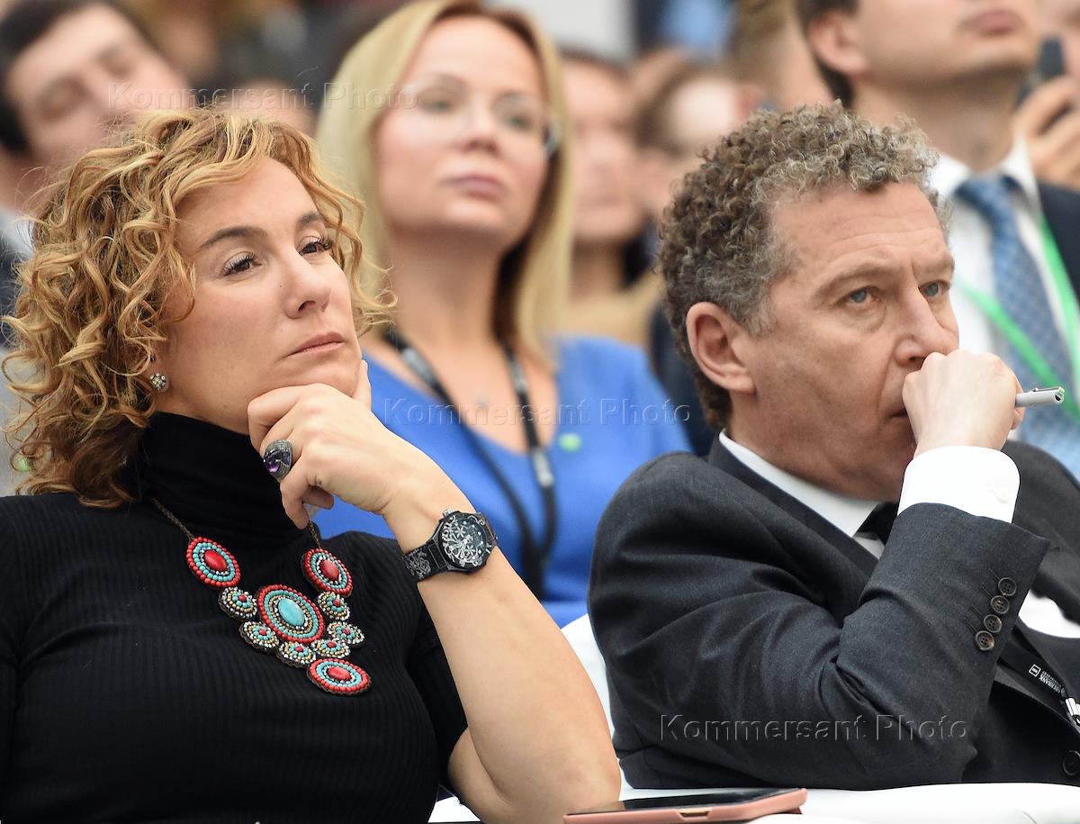 Демо-день совместного акселератора Сбербанка и международного венчурного фонда "500 Startups". Председатель правления ФГУП "Творческо-производственное объединение "Киностудия "Союзмультфильм" Юлианна Слащева (слева) и предприниматель Александр Мамут (справа) во время демо-дня.