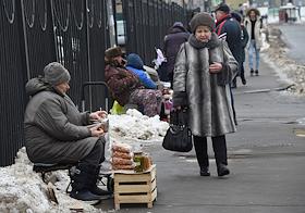 Жанровая фотография. Женщина торгует домашними солениями на тротуаре.