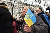 Всероссийская акция протеста против политического преследования женщин и матерей "Марш материнского гнева" прошла в Новопушкинском сквере. Учасница акции с флагом Украины.