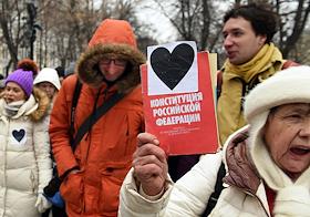 Всероссийская акция протеста против политического преследования женщин и матерей "Марш материнского гнева" прошла в Новопушкинском сквере. Правозащитник, член Московской Хельсинской группы Валерий Борщев (слева) во время акции.