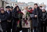 Церемония открытия мемориальной доски в память о писателе Данииле Гранине на фасаде дома № 8 по Малой Посадской улице в Санкт-Петербурге. Справа налево: актер Олег Басилашвили, председатель Совета Федерации России Валентина Матвиенко и временно исполняющий обязанности губернатора Санкт-Петербурга Александр Беглов во время церемонии.