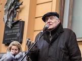 Церемония открытия мемориальной доски в память о писателе Данииле Гранине на фасаде дома № 8 по Малой Посадской улице в Санкт-Петербурге. Актер Олег Басилашвили во время церемонии.