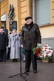 Церемония открытия мемориальной доски в память о писателе Данииле Гранине на фасаде дома № 8 по Малой Посадской улице в Санкт-Петербурге. Председатель Законодательного собрания (ЗакС) Санкт-Петербурга Вячеслав Макаров во время церемонии.