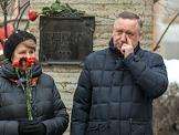 День памяти поэта Александра Пушкина. Заведующая мемориальной музей-квартирой А.С.Пушкина Галина Седова (слева) и временно исполняющий обязанности губернатора Санкт-Петербурга Александр Беглов (справа) на ежегодной траурной церемонии на Мойке, 12, где была последняя квартира поэта.