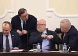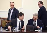 Совещание по вопросам интеграции университетской и академической науки прошло в министерстве науки и высшего образования России. Действительный член Российской академии наук Михаил Егоров (слева) и ректор Государственного университета - Высшей Школы Экономики (ВШЭ) Ярослав Кузьминов (в центре) во время совещания.