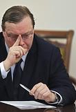 Совещание по вопросам интеграции университетской и академической науки прошло в министерстве науки и высшего образования России. Первый проректор Государственного университета - Высшей школы экономики (НИУ ВШЭ) Вадим Радаев (справа) перед началом совещания.