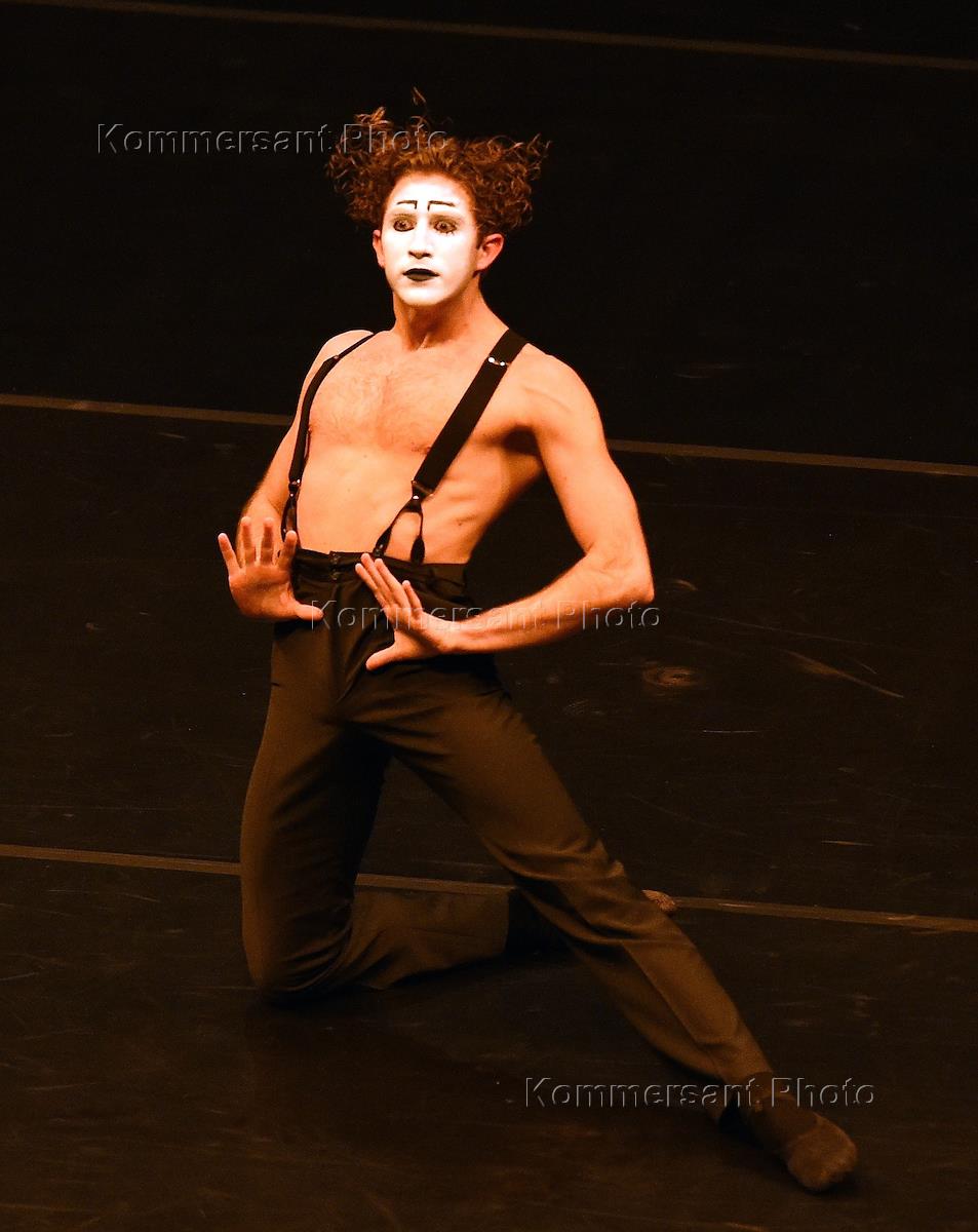Вечер одноактных балетов SACRE танцовщика Сергея Полунина на сцене Московского концертного зала "Зарядье". Одноактный балет "Фальшивая улыбка" на музыку группы Kroke в постановке хореографа Росса Фредди Рея. Солист балета Сергей Полунин во время спектакля.