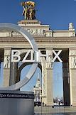 Жанровая фотография. Скульптура "Тракторист и колхозница" над аркой Главного входа ВДНХ.