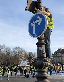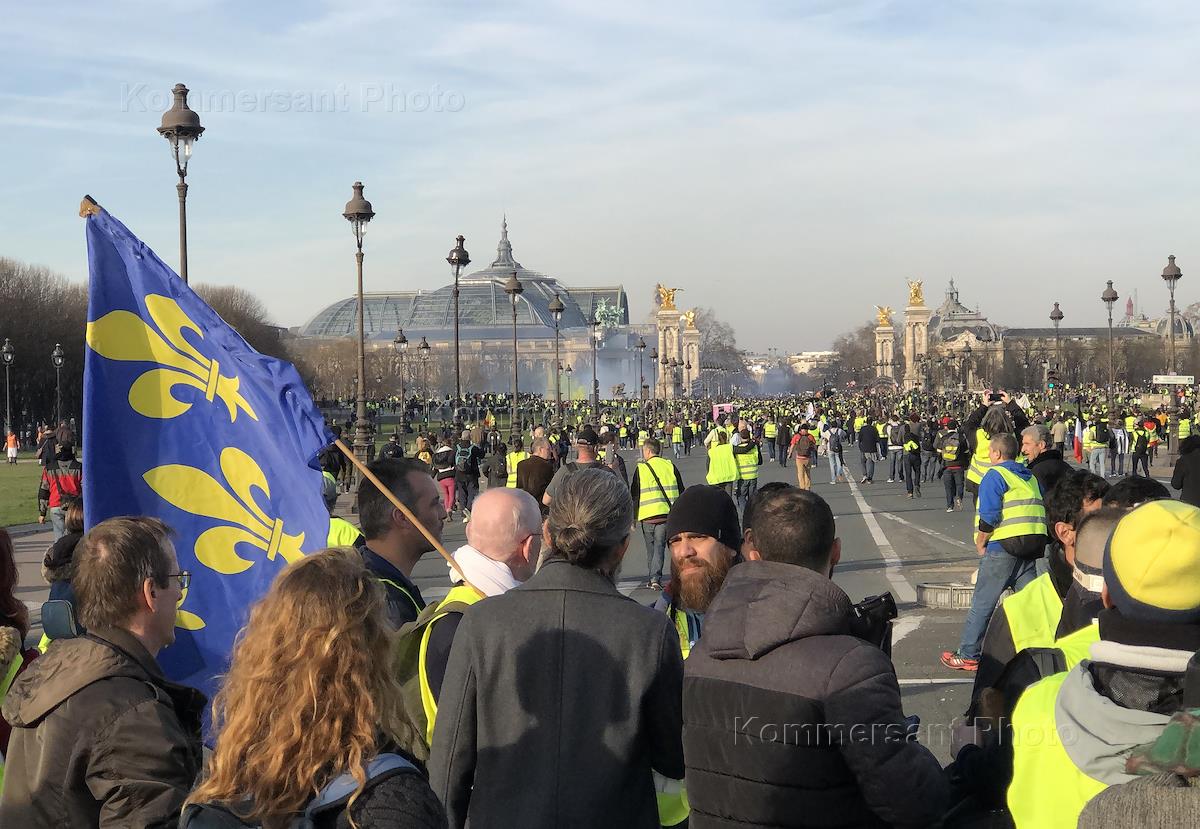 Участники 14-й манифестации движения "желтых жилетов" на улицах Парижа.
