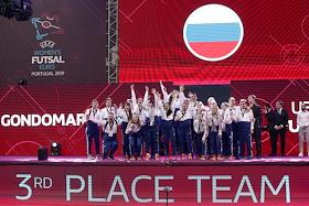 ЕВРО по футзалу среди женщин. Финальная стадия. Матч за третье место между сборными командами России и Украины в многофункциональном павильоне "Гондомар" в Порту. Церемони награждения.