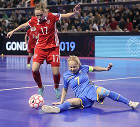 ЕВРО по футзалу среди женщин. Финальная стадия. Матч за третье место между сборными командами России и Украины в многофункциональном павильоне "Гондомар" в Порту.