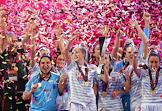 ЕВРО по футзалу среди женщин. Финальная стадия. Матч между сборными командами Испании и Португалии в многофункциональном павильоне "Гондомар" в Порту. Церемония награждения.