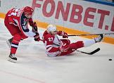 Континентальная хоккейная лига (КХЛ). Матч между командами ЦСКА (Россия, Москва) и "Витязь" (Россия, Подольск) прошел на стадионе "ЦСКА Арена". Игрок команды ЦСКА Никита Выглазов (слева) и игрок команды "Витязь" Войтех Мозик (справа) во время матча.