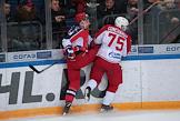 Континентальная хоккейная лига (КХЛ). Матч между командами ЦСКА (Россия, Москва) и "Витязь" (Россия, Подольск) прошел на стадионе "ЦСКА Арена". Игрок команды "Витязь" Войтех Мозик (в центре) во время матча.