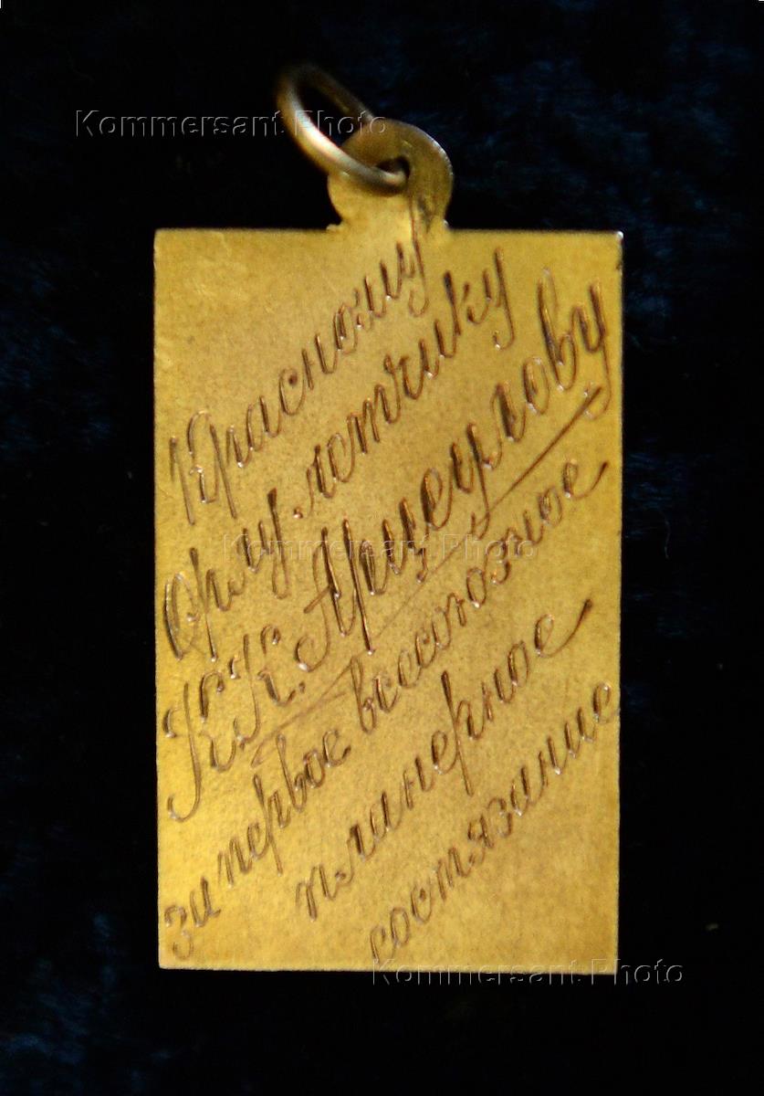 Жанровая фотография. Надпись на жетоне "От Огонька". Золотой жетон Константину Арцеулову.