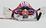 Континентальная хоккейная лига (КХЛ). Матч между командами ЦСКА (Россия, Москва) и "Локомотив" (Россия, Ярославль) на стадионе "ЦСКА Арена". Вратарь команды "Локомотив" Илья Сорокин во время матча.
