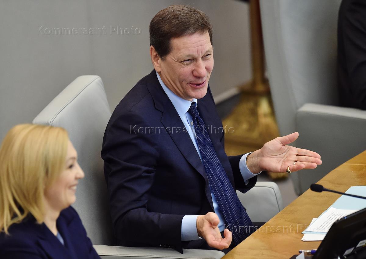 Пленарное заседание Государственной думы (ГД) России. Первый заместитель председателя ГД России Александр Жуков перед началом заседания.