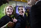 Премьера фильма "Юморист" режиссера Михаила Идова состоялась в Доме Кино. Слева направо: актриса Виктория Толстоганова, телеведущая Ксения Собчак и продюсер, режиссер, актер Алексей Агранович на премьере.