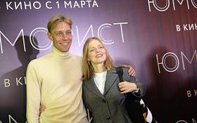 Премьера фильма "Юморист" режиссера Михаила Идова состоялась в Доме Кино. Продюсер Максим Королев и телеведущая Надежда Королева на премьере.