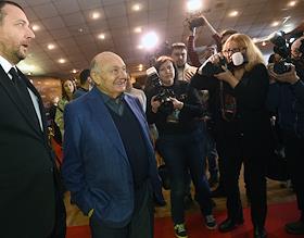Премьера фильма "Юморист" режиссера Михаила Идова состоялась в Доме Кино. Продюсер, режиссер, актер Алексей Агранович (слева) и писатель Михаил Жванецкий (справа) на премьере.