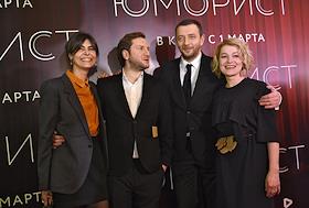 Премьера фильма "Юморист" режиссера Михаила Идова состоялась в Доме Кино. Съемочная группа фильма на премьере.