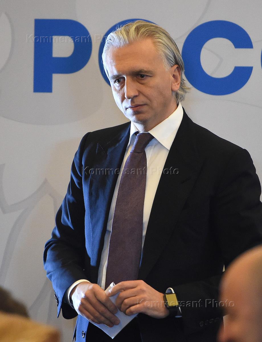 Внеочередная конференция Российского футбольного союза (РФС) прошла в гостинице "Лотте Отель Москва". Председатель правления ПАО "Газпром нефть" Александр Дюков, избранный президентом РФС, во время конференции.