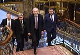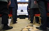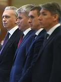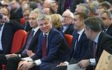 Внеочередная конференция Российского футбольного союза (РФС) прошла в гостинице "Лотте Отель Москва". Председатель правления ПАО "Газпром нефть" Александр Дюков (второй справа), избранный президентом РФС, во время конференции.