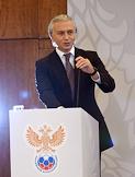 Внеочередная конференция Российского футбольного союза (РФС) прошла в гостинице "Лотте Отель Москва". Министр спорта России Павел Колобков во время конференции.