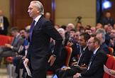 Внеочередная конференция Российского футбольного союза (РФС) прошла в гостинице "Лотте Отель Москва". Главный тренер сборной России по футболу Станислав Черчесов во время конференции.