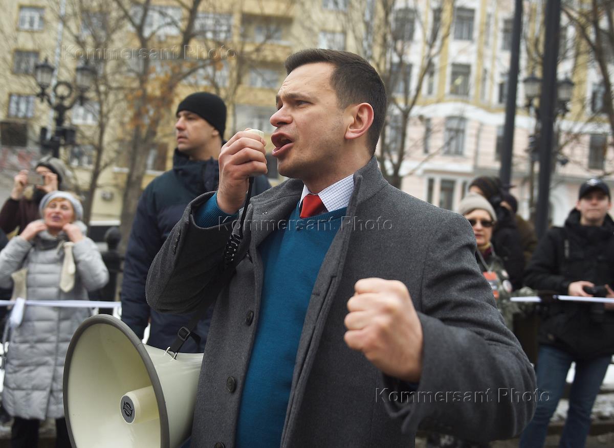 Марш памяти политика Бориса Немцова прошел по Бульварному кольцу. Лидер движения "Солидарность" Илья Яшин во время марша.